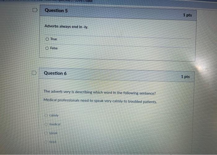 Solved Loke Question 5 1 Pts Adverbs Always End In Ly True Chegg Com